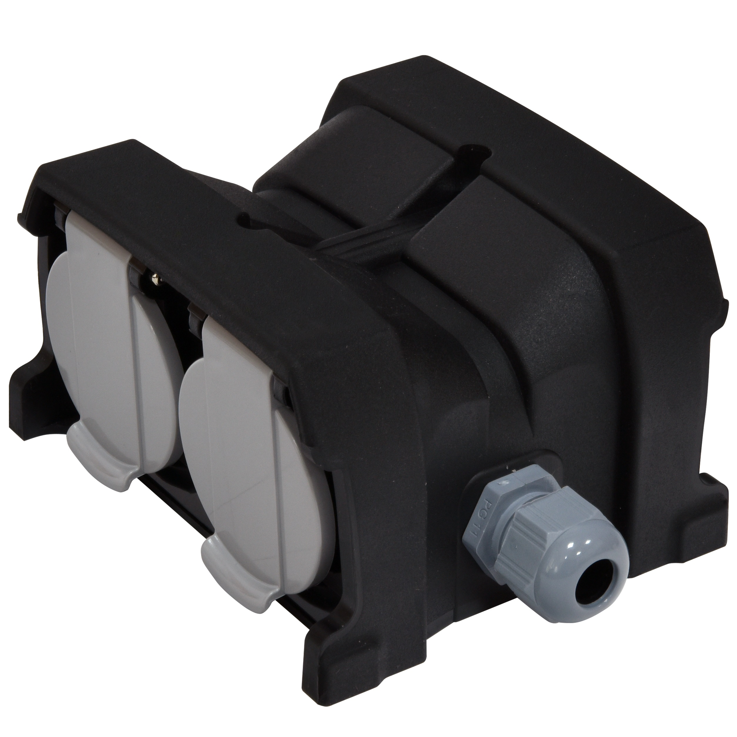 Розетка кабельна 4-на з кришк. ERS-4CM (Schuko, IP44, каучук, чорна)
