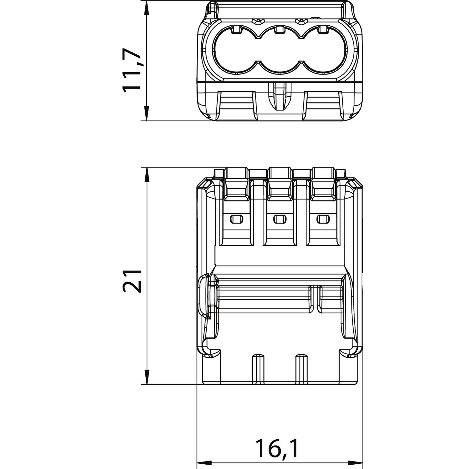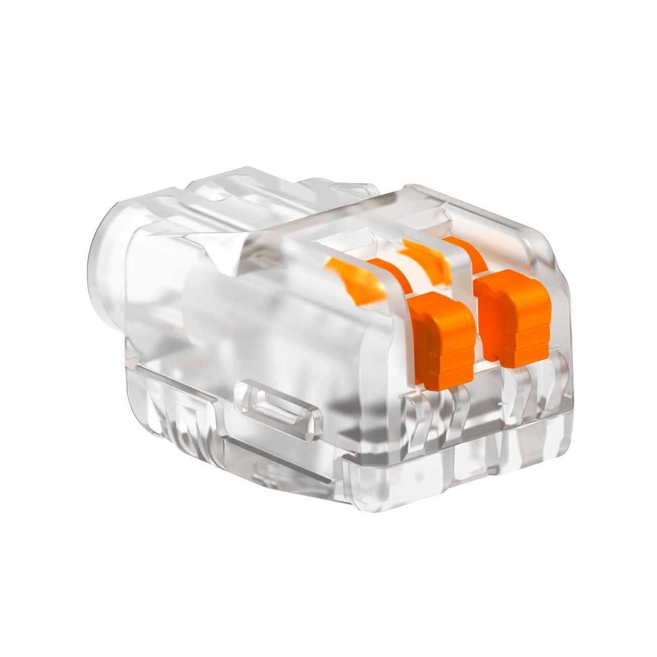Універсальна швидкозатискна клема для з'єднання електричних проводів, протестована згідно з EN 60998. Провід може бути гнучким, багатожильним або жорстким. При розведенні жорстких дротів не потрібен важіль.