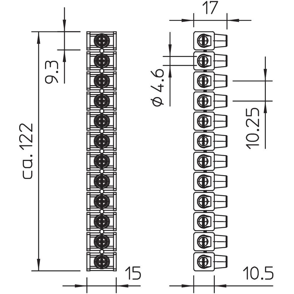 Клемник 12 контактів, 12 невипадаючих гвинтів, 16А, 380В, max 4x2,5 мм² / латунь