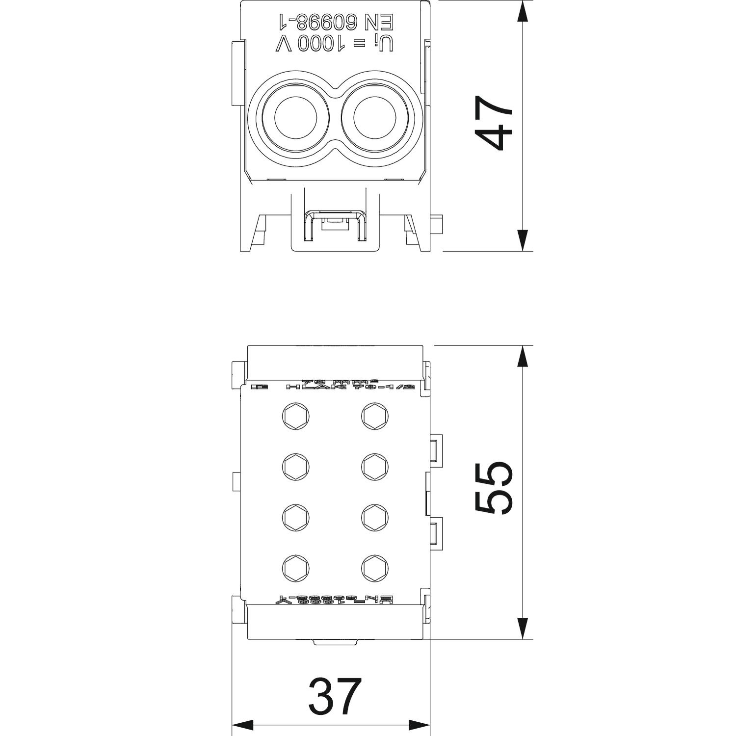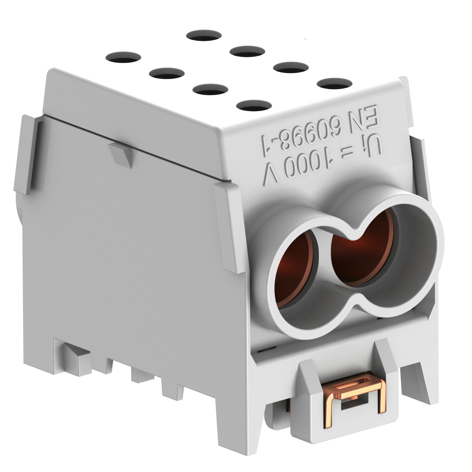 1-контактна головна клемна колодка, 4 поперечні перерізи провідників 70 мм² на контакт. З 2 гвинтами на клему для надійного контактного зчеплення. Високоміцне швидкознімне кріплення з оцинкованої листової сталі для простого монтажу на опорних рейках.
