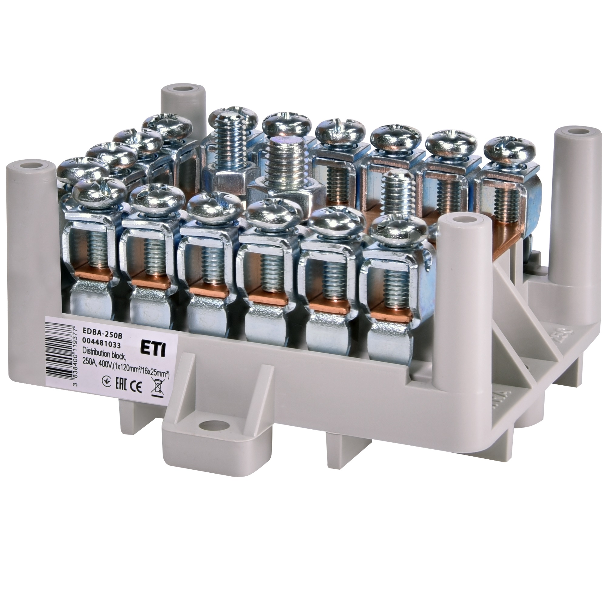 Блок розподільчий EDBA-250B (250А, 400В, 1х120мм²/16х25мм²)