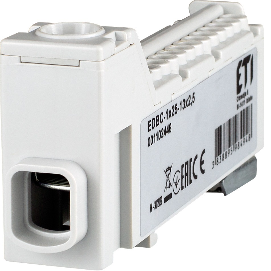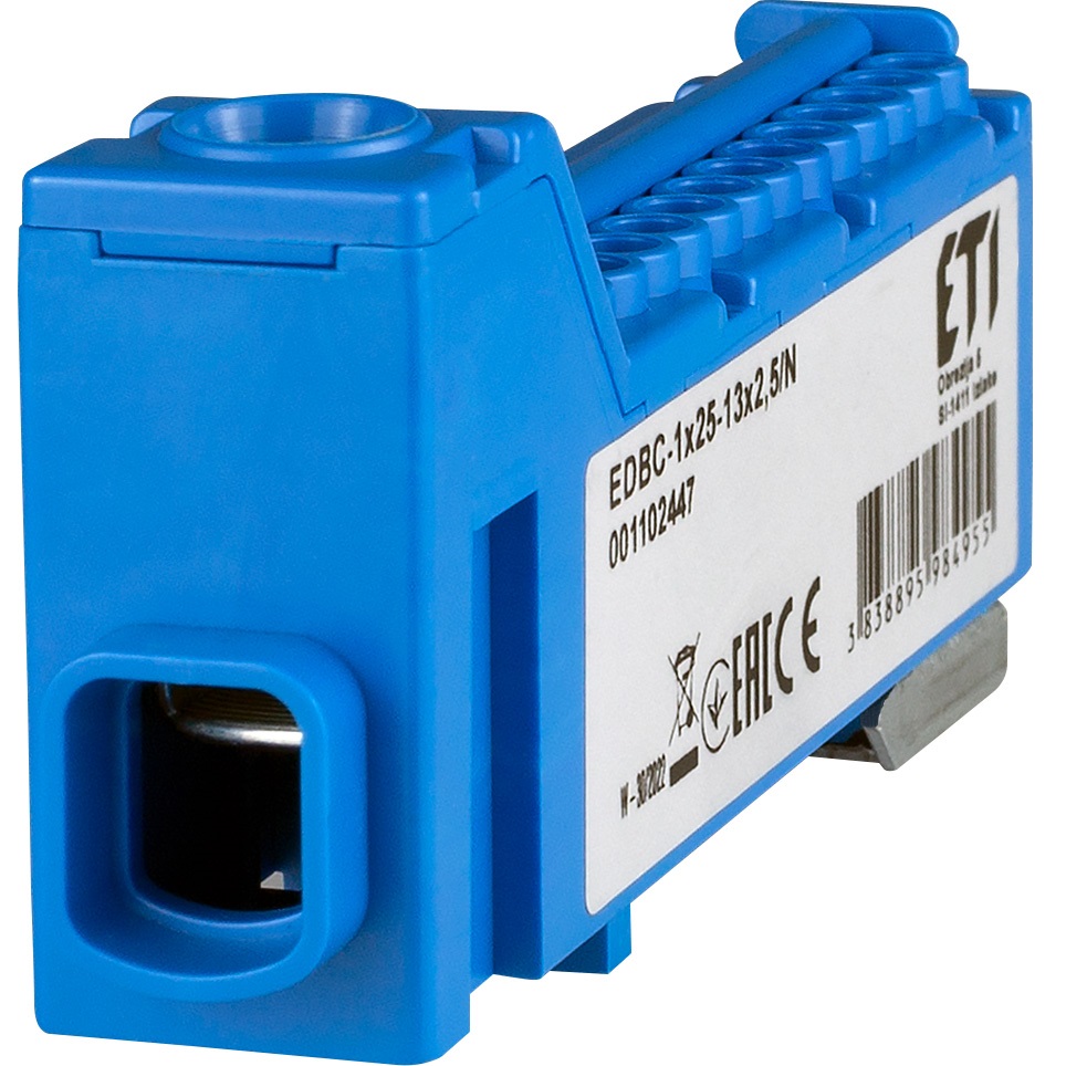 Блок розподільчий EDBC-1x25-13x2,5 (63A, 1000V AC/1500V DC, IN: 1x25, OUT: 13x2,5)