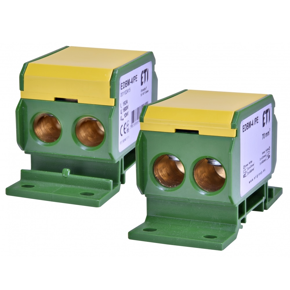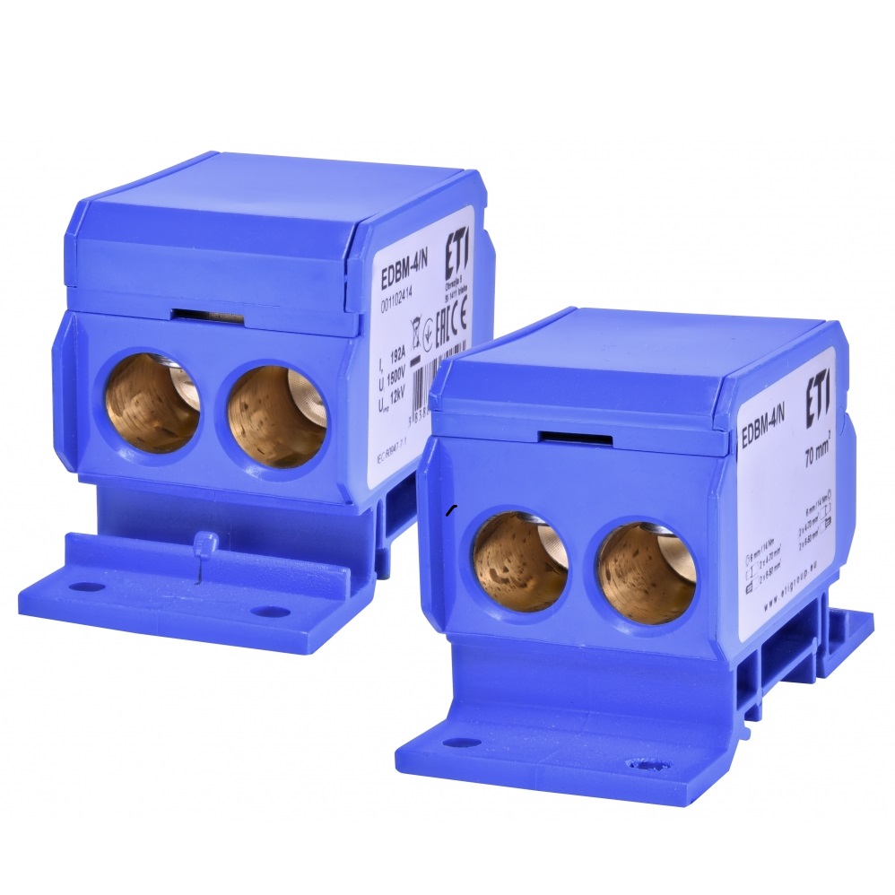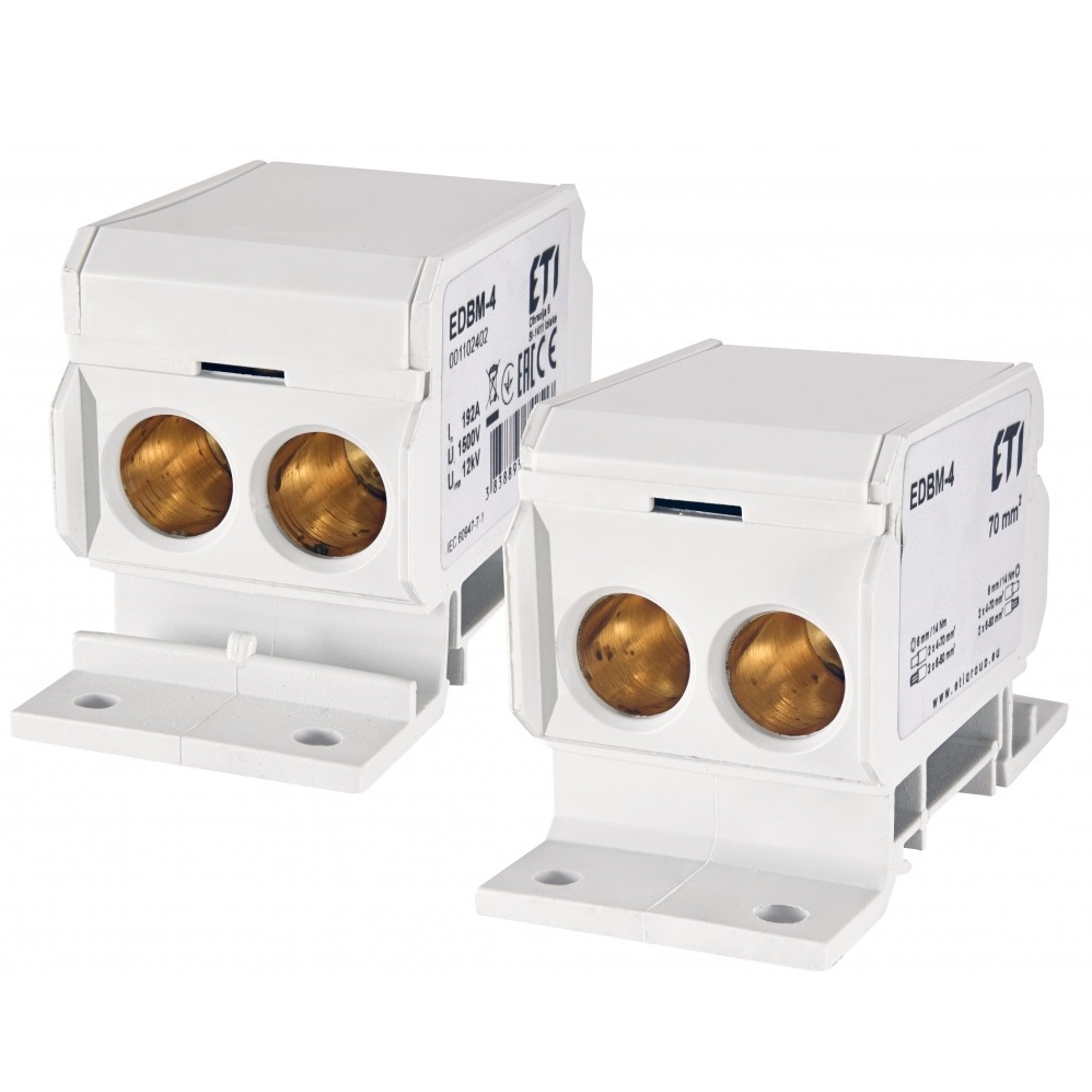 Розподільні блоки серії EDBM призначені для з'єднання провідників більшого перетину з одними або кількома провідниками меншого перетину. Встановлюються в пристроях низької напруги для зручного монтажу, візуального та фізичного розподілу фазних, нейтральних та заземлюючих проводників.