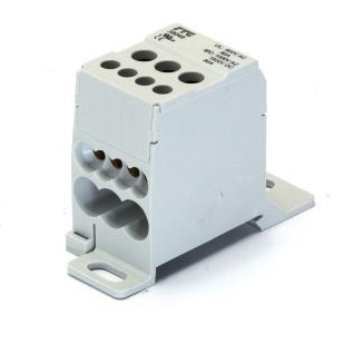 Розподільчий блок 1-пол.; Іном=80 А (1 вхід: 1х2,5-25 мм², 6 виходів: 4х2,5-6, 2х2,5-25 мм² ); (66x27x47 мм), монтаж на: DIN-рейку, плоскість