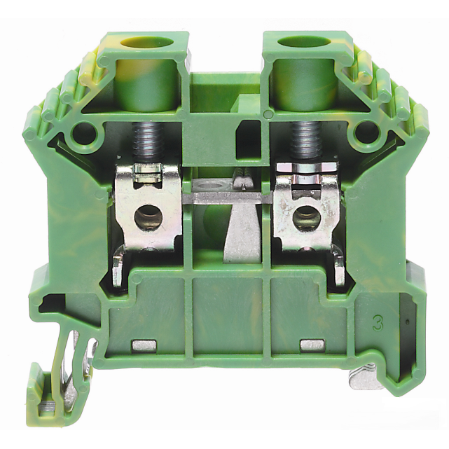 Клема SSL 10/2A гвинтова, заземляюча, 48х10х47мм, DIN-рейка 35мм, дріт: зняття ізол. L=15мм, переріз max 10мм², жовто-зелена