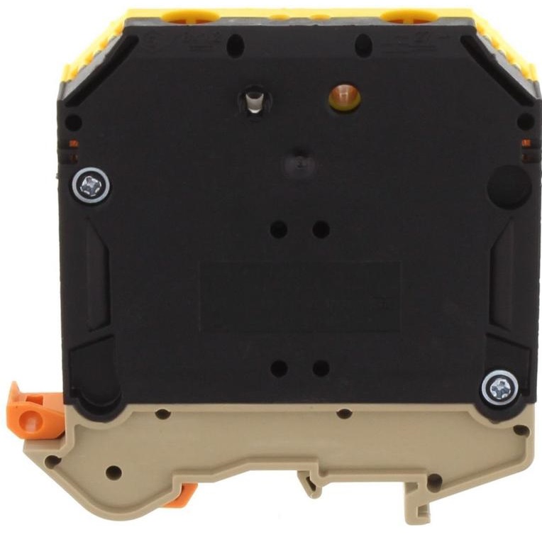 Клема RK 50 PE BKYE гвинтова прохідна, площа перерізу кабелю max 50мм², довжина неізольов. частини кабелю 27мм, без контакту з DIN-рейкой, жовто-чорна