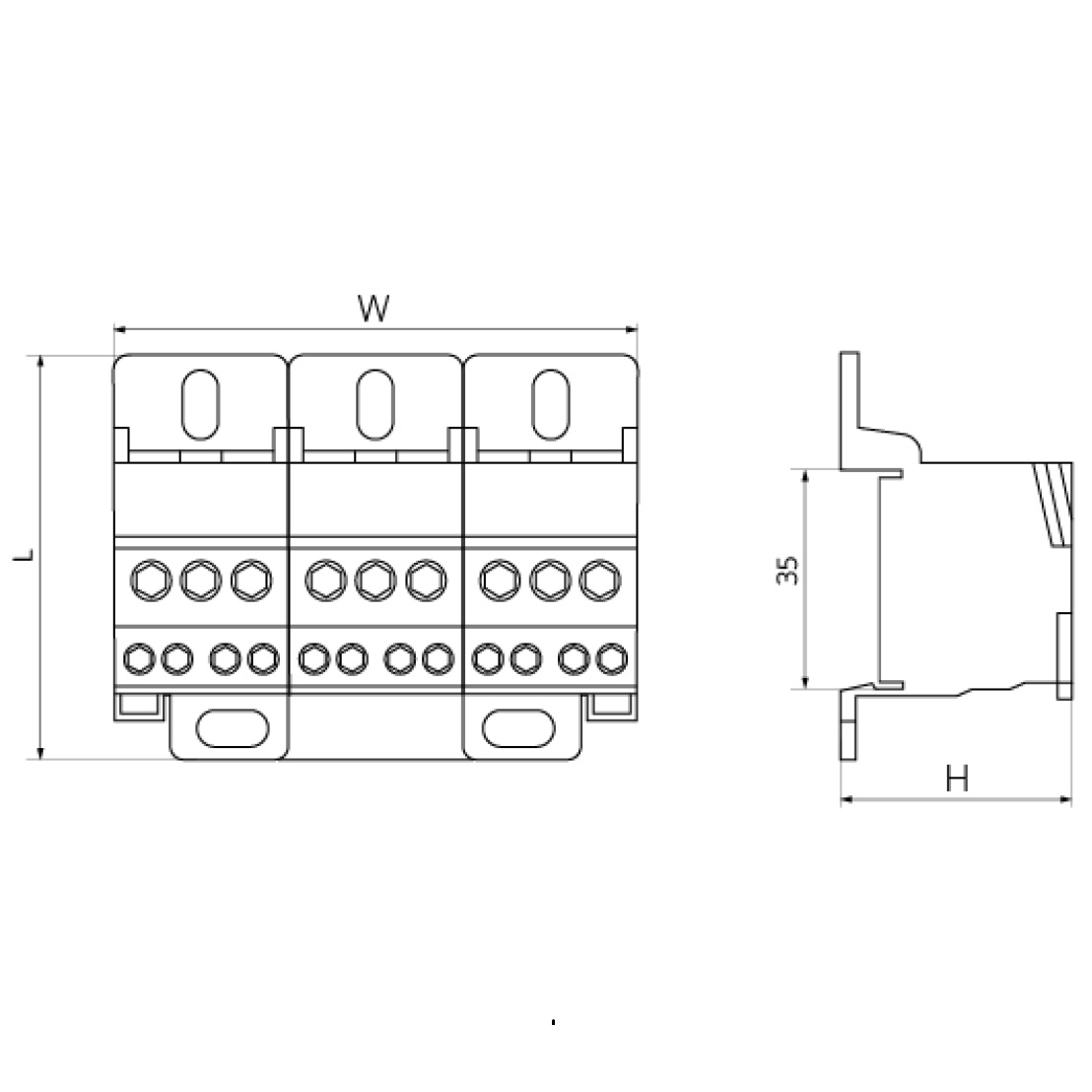 Блок розподільний, триполюсний на DIN-рейку 175А/3