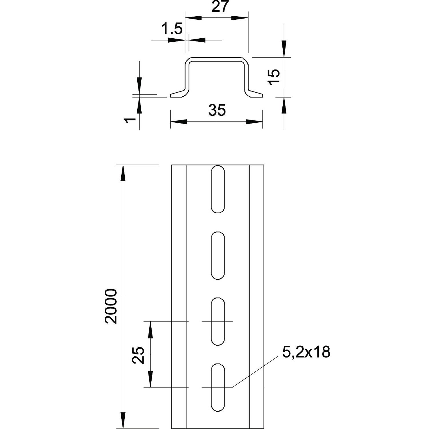 Профільна рейка перфорована 35 x 15 мм, аналогічна DIN EN 60715 (раніше DIN EN 50022), але з товщиною матеріалу 1,5 мм.