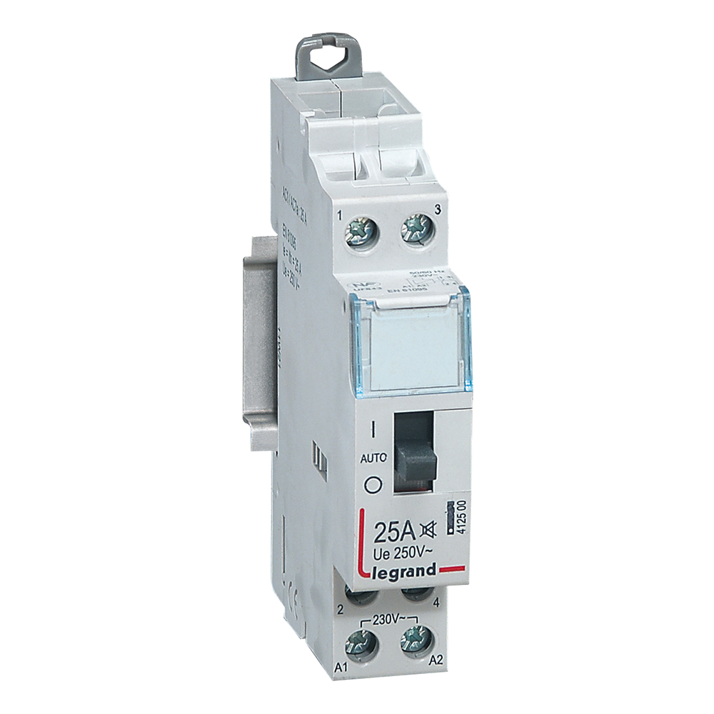 Контактор CX³ малошумний З рукояткою управління (ВКЛ/АВТО/ОТКЛ), 2 полюса, 250 В ~, з котушкою 230 В ~, 25 А, 1 Н.В.+1 Н.З., 1 модуль